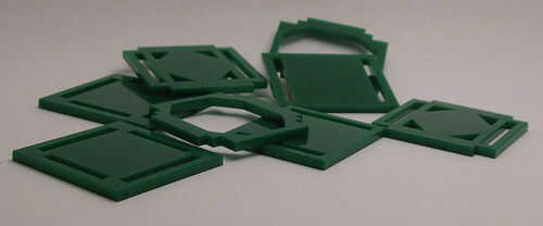 Ranuras en este diseño producen el siguiente resultado en acrílico de 3mm verde. (Véase el cuadro 6 para una ranura alterado/equipada en Inkscape)