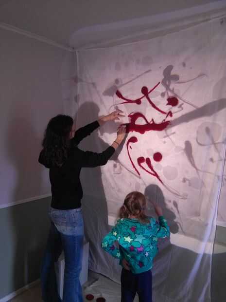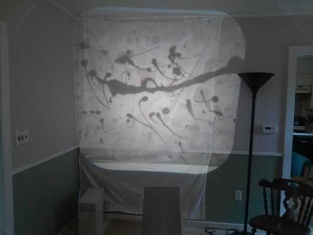 probar esta técnica de salpicaduras de pintura si usted está buscando un diseño inusual y visualmente impactante para una pared en su hogar o negocio. Esta es una foto del proyecto terminado desde mi peluquería donde fue siempre un foco de interés y gran conversación de arranque. La ventaja de esta técnica sobre un diseño a mano alzada es que mantiene el efecto más fiel a su estilo y realista, y es mucho menos sucio que intentar lanzar pintura en la pared!