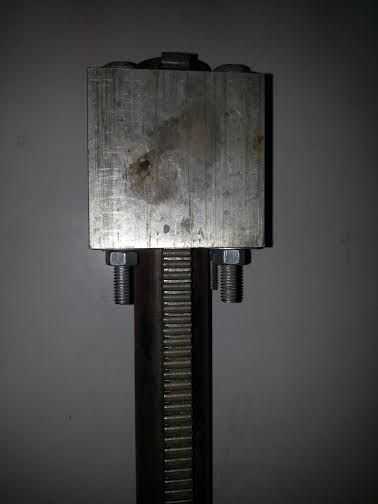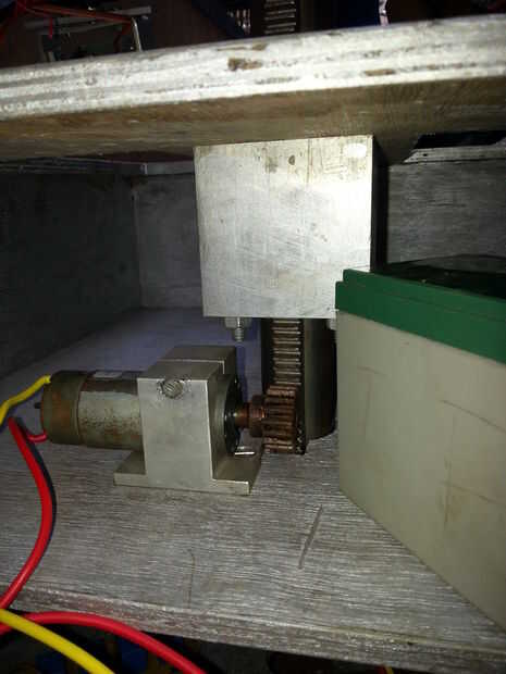 Así que aquí utilizamos mecanismo de estante y del piñón para hacer subir y bajar el conjunto completo