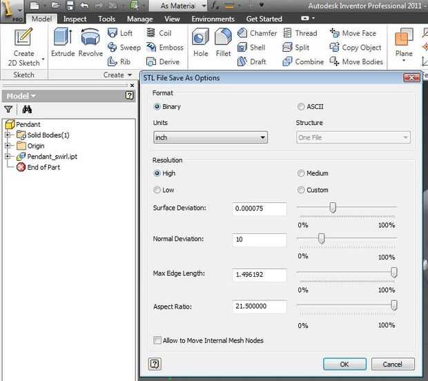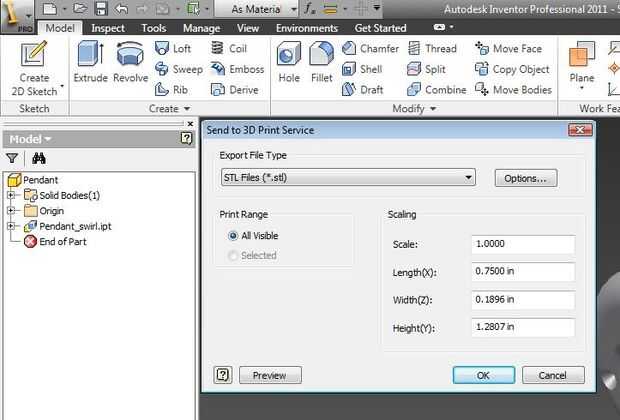 El tipo de archivo, en Inventor, asociados con impresoras 3D es la .stl o (lengua estándar de la teselación) y se genera muy fácilmente.