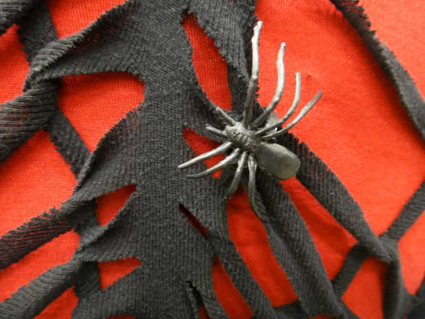 Sugerencia de idea o traje de traje de moda: par la camisa del web de araña con una tapa de malla negra transparente por debajo para darle un efecto más similar a la web. Para chicas, usar un sujetador nude color carne por debajo de la camisa de malla cima y web. Agregar corta falda negra, medias de red negras y botas para un look chick/vampy goth! Maquillaje: cara blanca, eyeliner grueso, lápiz labial negro. Coloque un anillo de araña de plástico como un accesorio a su camisa para completar el look. O simplemente llevar la araña en el dedo.
