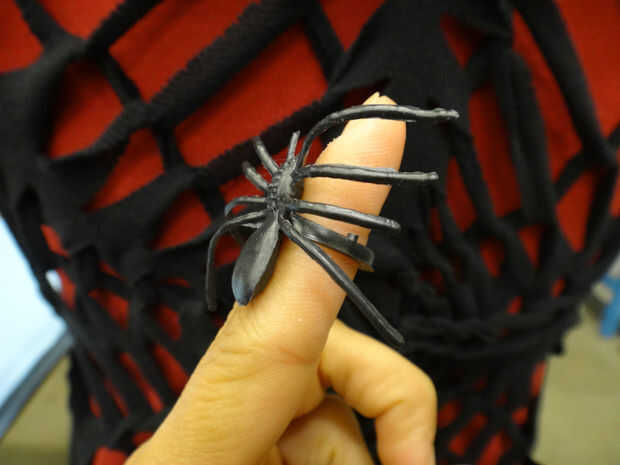 Añadir un anillo de araña de plástico como un accesorio a su camisa para completar el look! O puede llevar a la araña en el dedo.