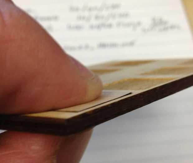 Estoy utilizando una chapa de hoja que compré en el sur de la madera en San José. Corte un cuadrado pequeño de mi hoja de chapa y me cayó en cada plaza. Se puede ver que el paso dos no es lo suficientemente profundo. El paso tres es mejor. Grabado de la trama del cuatro paso es simplemente perfecta!