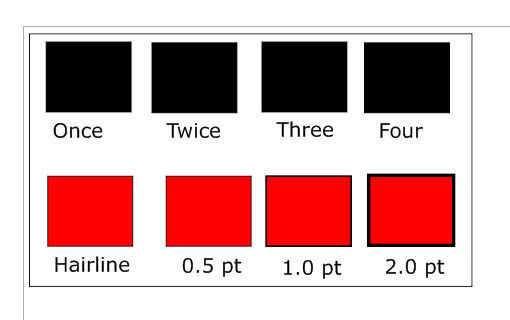 También quería probar la Unitalla. La segunda parte de mi plantilla tiene cuatro cajas, pero la línea exterior de cada caja se hace de un ancho de línea diferentes. Esto me da cierto margen de meneo a mi pieza; Si la chapa estaba un poco arrugada podría necesito una pequeña ladera para la chapa plana. Basado en la última prueba trama grabado estos cuatro veces. (Tenga en cuenta que la captura de pantalla muestra el área en rojo para que pueda ver cómo el ancho de línea afecta el tamaño del perímetro. Cuando grabado estos hice cada caja negro.)