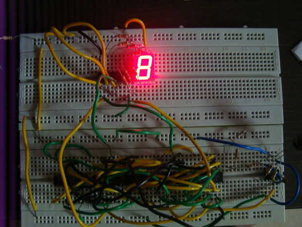 Y sí, queremos ver la salida para un display de 7 segmentos (utilizado común ánodo 7 segmentos para la indicación con IC 7447).