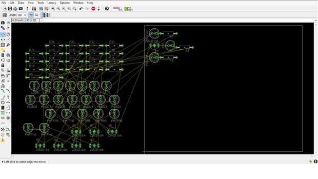 Después de mover todas las piezas del primer grupo, pasé el segundo cluster en justo a la derecha de la primera. Como era de esperar, el grupo 2 contiene IRLED2, PHTRN2, LED2, Q2 y resistencias 4-6.