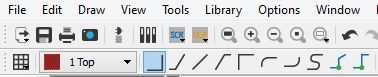 En primer lugar, haga clic en la herramienta "Ruta" y mirar la barra de herramientas en la parte superior de la pantalla. Debería ver un menú desplegable que tiene un cuadrado de color y dice "base 16" o "1 Top". Esto es donde seleccionas la capa del PCB que se trabajará en el. Nuestro Consejo es bastante simple que solo necesita 2 capas, pero algunas placas más complejas pueden tener hasta 10 o más!