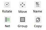 El proceso general para realizar una acción en águila es haga clic en el botón de la acción deseada en la barra de herramientas y haga clic en el objeto que se quiere aplicar esa acción a. Por ejemplo, empecé a girar todas mis resistencias. Así que haga clic en el botón "Girar" en la barra de herramientas y luego haga clic en la resistencia. Un solo clic permite girar el componente 90 grados. A menos que seleccione otra herramienta, el último uno hizo clic permanecerá activo y se puede continuar clic objetos sin tener que seleccionar la herramienta cada vez. Después de girar las resistencias, moví los componentes de. Puedes ver mis diseños intermedios y finales en las fotos anteriores. También incluí una imagen que muestra los botones que vamos a usar.
