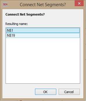 Después de que has copiado el número de grupos que desea, necesita conectarlos todos juntos. Nota: No agregue ningún símbolo de poder o tierra en un esquema en EAGLE. Cuidaremos de esto cuando lleguemos al diseño real. Por ahora, sólo asegúrese de que todo lo que se conectará al poder está conectado juntos y todo lo que se conectará a tierra está conectado (como se muestra en la imagen superior). Como se conecta los grupos mediante la herramienta red, águila le preguntará si desea conectar los segmentos de red. Seleccione el que desee y haga clic en Aceptar. No importa que uno elige como son lo mismo. Por ejemplo, la parte superior de cada fila del esquema tendrá poder. Así que asegúrese de que todas las conexiones tienen el mismo nombre suchs como"$1", o usted puede cambiar el nombre para ser "PWR". Para la parte inferior de cada fila del esquema, queremos a todos conectarse a tierra. Una vez más, asegúrese de que todos tienen el mismo nombre. Por defecto águila puede llamarlo "N$ 6", pero puedes renombrarlo a algo como "GND".