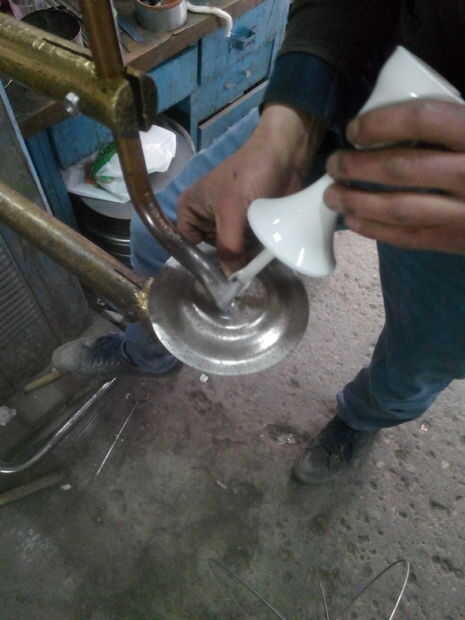 Cortar una pieza de metal para localizar en los anillos pequeños. Perfore el centro de la pieza de metal para el enterance de cable eléctrico.