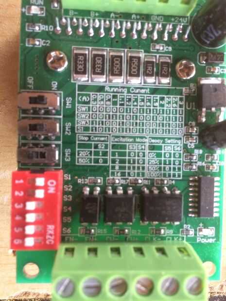 En segundo lugar, establecer los controladores paso a paso como lo hice en la foto tercera, estos interruptores de dejar que el conductor sabe lo que es la corriente de sus motores y si usas micropasos. Wtih micropasos, el controlador divide cada paso en varios pasos (el motor necesita por ejemplo encender cuatro micropasos tienen el efecto de un paso normal). Decidí no usar micropasos, porque es un paso normal para mi grabador 0,0075 mm.