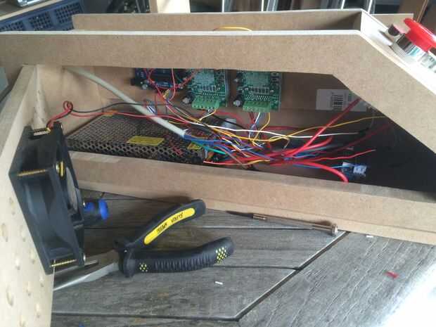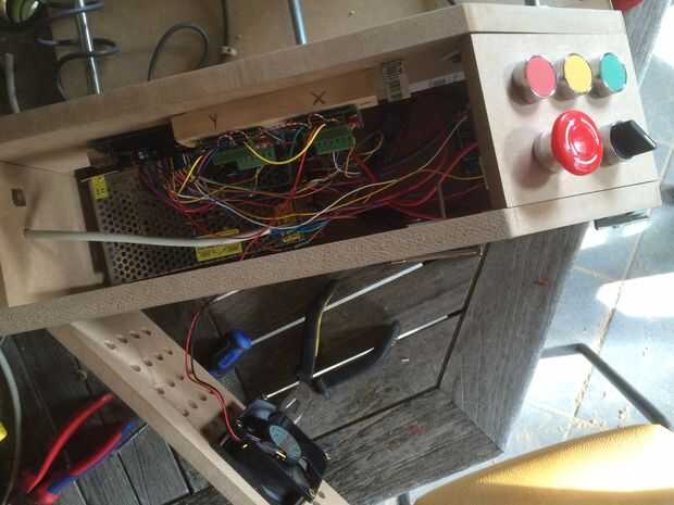 En primer lugar, conecte todos los tableros, alimentación, relé, láser y botones (Inicio, pausa y stop) como en la cuarta, la quinta y la sexta imagen de control. Además, utilicé dos ventiladores que obtuve de un ordenador antiguo, estos son necesarios para el enfriamiento del láser y los controladores de motor paso a paso.