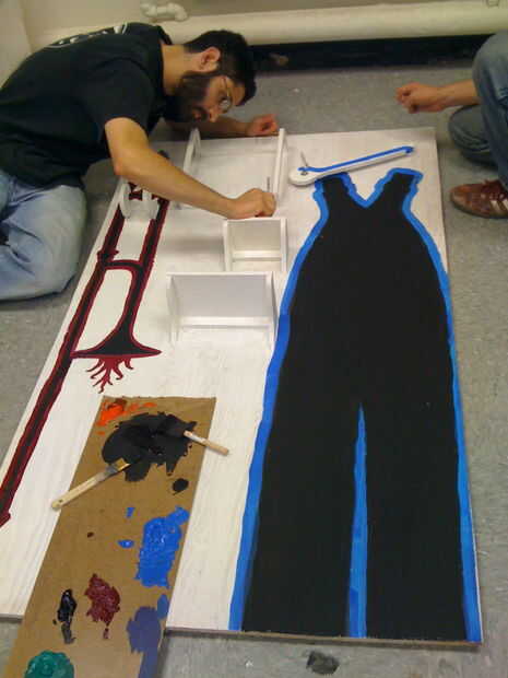 La forma de los objetos utilizando pintura acrílica negro para el interior y llamativos colores distintivos para el exterior de la pintura