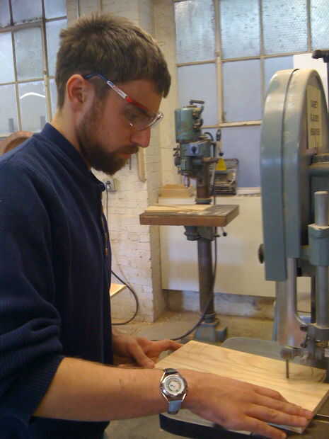 Siguiendo las normas básicas de seguridad, corte las piezas de madera siguiendo las líneas