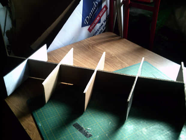 A. corte y medir las piezas de refuerzo. Sólo necesita una silueta para cortar struts. Este es el media silueta. Puede crear más de 3 siluetas para la fuerza adicional para un largo pecho de cajones por ejemplo.