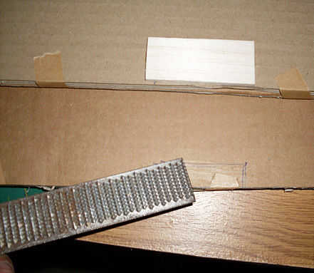 4. decorar la superficie de la puerta y luego pega un trozo de madera de balsa / masonite del tamaño de una bisagra. Perfore agujeros para tornillos. La madera proporciona soporte sólido de la bisagra. Experimenté con bisagras de tela en lugar de metal unos.
