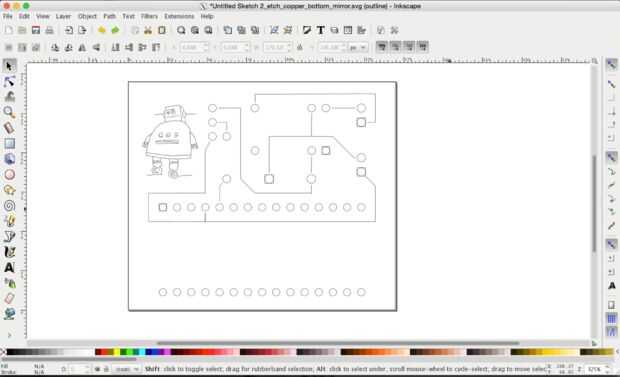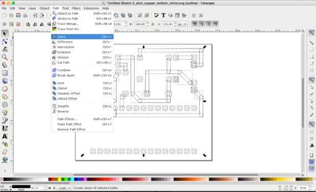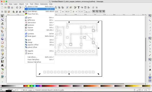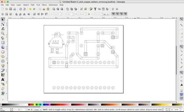 Abrir el *yourfilename*_etch_copper_bottom_mirror.svg en Inkscape, seleccionar todo y pulse ctrl + shift + g hasta que todo esté desagrupado.