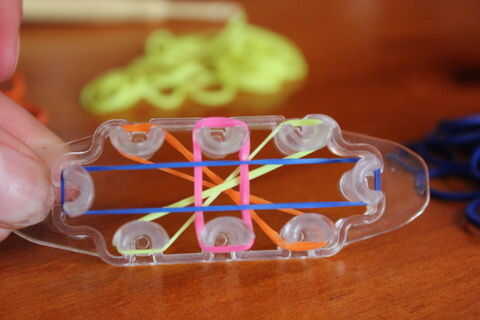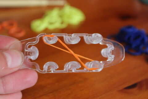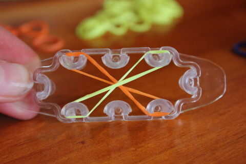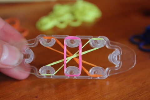 Ahora, agregar una banda sobre las dos clavijas en la imagen. Coloque en forma de 8.