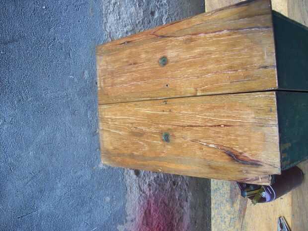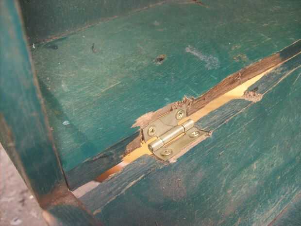 Sólo lijar la pintura vieja, alisar la superficie y donde las bisagras serán de la marca. He instalado las bisagras y finalmente varniosh el cuadro entero.