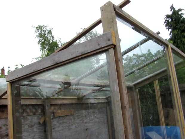 Lo único que he comprado este invernadero fue la silicona al poner el cristal en marcos y los tornillos para unir la madera. Todo lo demás, tenía en el sitio y estaba decidido a utilizar. El vidrio era 4 pies por 6 pies, 5 hojas y mi madera que podía hacer 2 cuadros grandes y uno pequeño. El vidrio fue tan fuerte que temía inclinó las piezas grandes, podría caer como he trabajado con él. Tenía la forma inusual que alinearon con la valla en el lado. Una vez que lo pongo en bloques para mantener fuera de la tierra, era bastante alto en la parte delantera. Lean a era la única solución.!