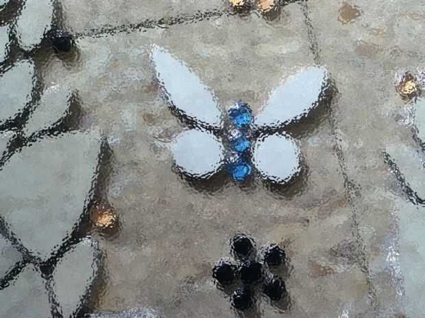 he utilizado cristal adoquines y azulejos para crear una apariencia de vidrieras de este huevo. Usando una técnica de azulejo de mosaico por pegar los pedazos de vidrio sobre el huevo y luego aplicar la lechada, luego coloca un LED dentro para ilumin