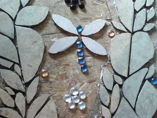 este proyecto, mi primer intento en un mosaico de azulejos y una forma de utilizar algunos azulejos sobrantes a la izquierda después de labrar el suelo del sótano. El mosaico se ve complicado, pero no es. He instalado en el vestíbulo de nuestro bunga