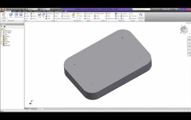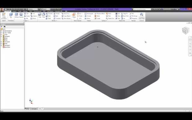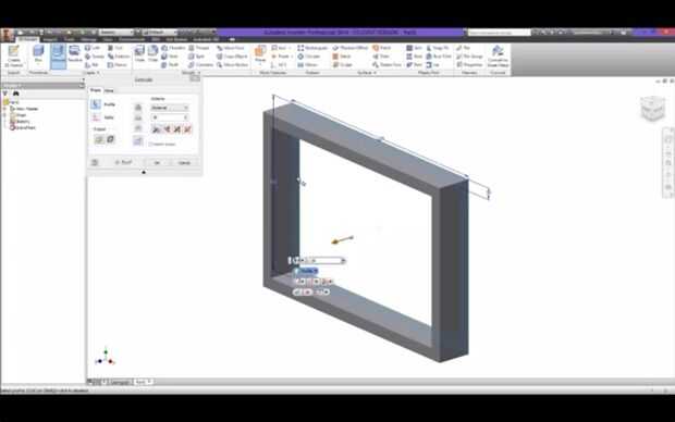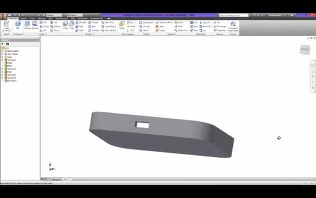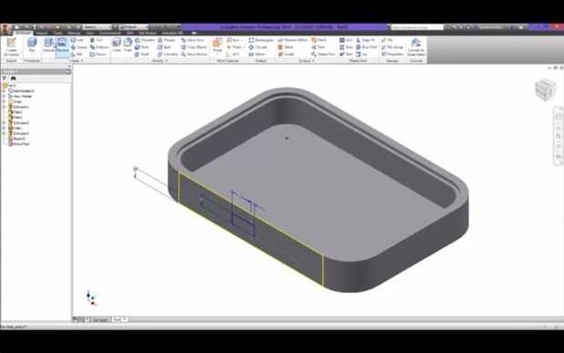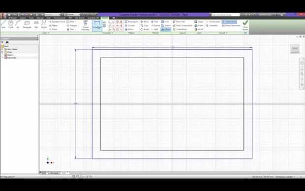 Utilice la herramienta de geometría de proyecto en la parte superior de la caja para crear otro dibujo. Utilice la herramienta offset para crear un dibujo ligeramente más grande que el rectángulo interior. Para crear espacio para la pantalla que se colocará más adelante, sacan esta nueva forma (corta) hacia abajo.
