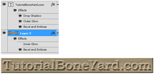 OK, abra un nuevo documento de Photoshop. O abra el archivo start_1.psd . Tenemos una capa de textura de madera debajo de la capa de texto. Ambos tienen efectos de estilo de capa aplicados a ellos.