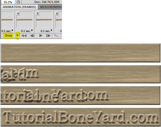 Ahora tenemos una intro de nuestra animación. Seleccionar el bucle una vez. Haga clic en el botón Play en el área de Marcos. El texto recupera, primero revuelto, entonces todo el texto se muestra al final de la animación.