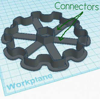 Para mi cortador de la galleta del engranaje, necesario para conectar el engranaje diámetro diámetro exterior a la interior. Ya que no sé cómo modificar el script de cortador de galleta para agregar conectores sin él generando bordes cortantes a los conectores, la encontré más rápido agregar conectores utilizando TinkerCAD. (www.tinkercad.com)