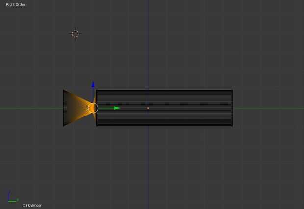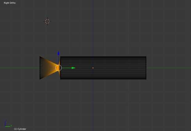 Ahora puede crear un cono en el interior para dirigir la luz de la bombilla o LED. Divide la longitud del interior cilindro dos veces, y luego las subdivisiones juntas hacia la parte frontal de la linterna. Luego seleccioné los vértices en la subdivisión más adelante, y reducido estas muy pequeñas, creando un cono.