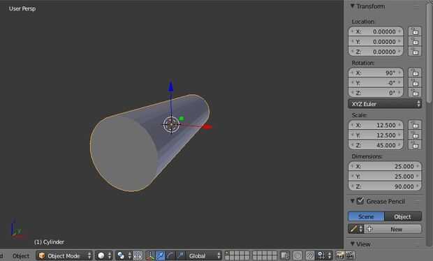 Mirar la ventana de datos a la derecha de la ventana de la vista. Si el cilindro está activado, verá que una sección en 'Transformar' marcado 'Dimensiones' como en las fotos anteriores. Cambiar estos números se modificará la longitud, anchura y altura del cilindro, correspondiente a los ejes con. Cambiar para adaptarse a su fantasía.