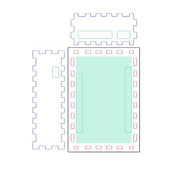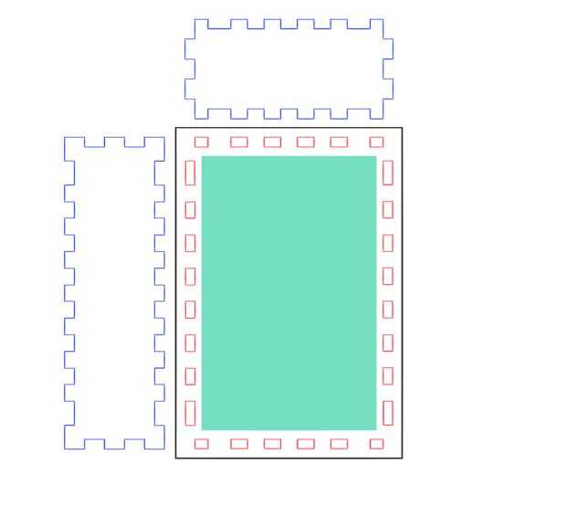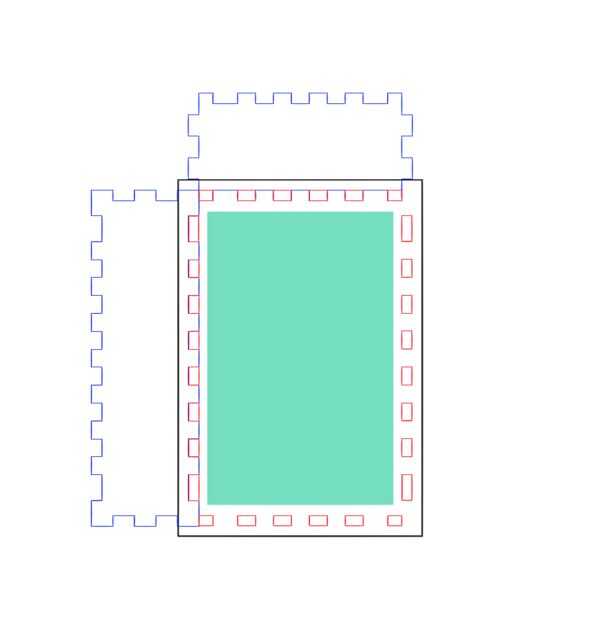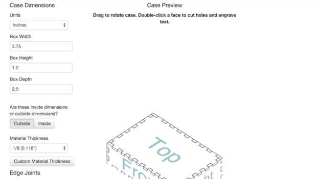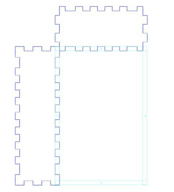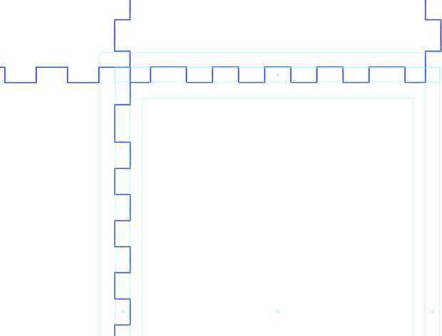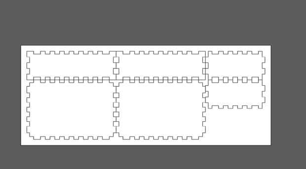 Quería poder ajuste de fricción juntos y ser robusto y agradable. He utilizado Makercase para generar las paredes laterales, pero quería la parte superior e inferior con agujeros para uniones de dedo poder ajustar, así que hice las ediciones en Illustrator.