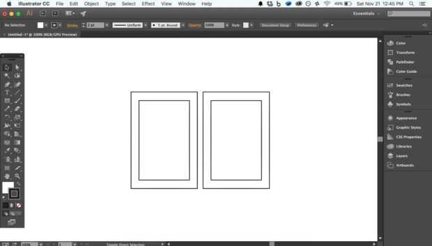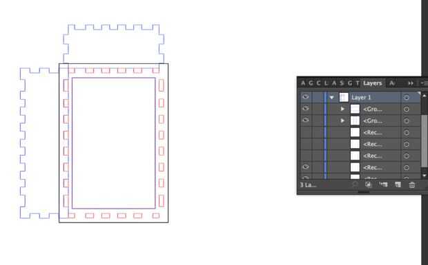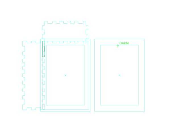 - Copiar dos de las paredes de Makercase en Illustrator y ellos línea a lo largo del rectángulo 2.5x3.5 como si usted desarrollaba el cuadro. Seleccionar todo y comando/ctrl + 5 guías.