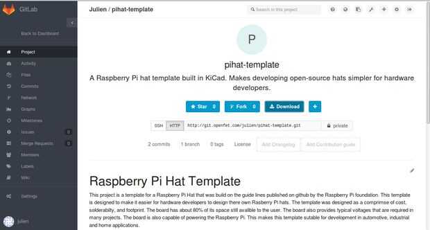 Para crear un sombrero de frambuesa Pi vas a necesita los archivos de plantilla de diseño. Estos pueden obtenerse de git, puede clonar con concha de git o puede descargar el archivo zip.