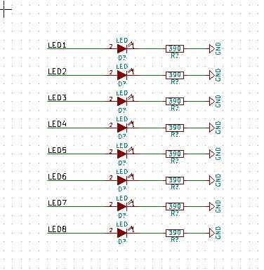 - Añadir 8 LED ' s de la biblioteca en el lado (no te preocupes acerca de los paquetes aún)