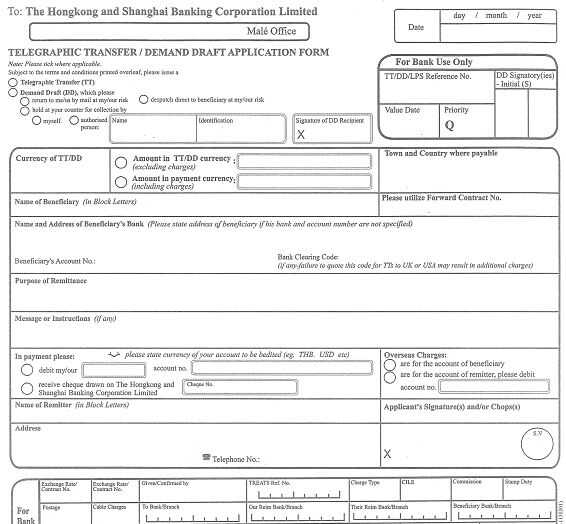 Ahora le daré las instrucciones paso a paso para crear un formulario llenado de base de datos para llenar un banco telegráfica a transferencia (TT). Para este trabajo he utilizado forma HSBC TT. Esta es la forma común dado HSBC en países asiáticos.