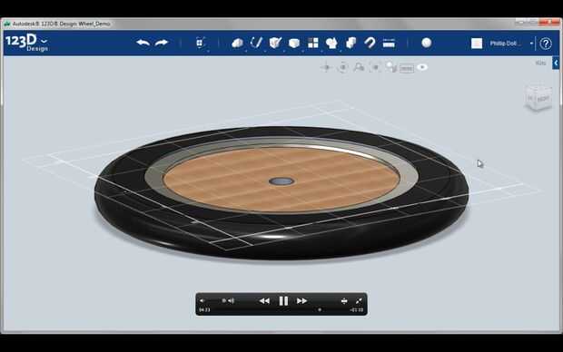 Con la herramienta de filete de modificar, redondear las superficies superior y luego añadir color al cubo, marco y neumáticos utilizando materiales. Lo que empezó como unos círculos debe ahora buscar mucho más como una rueda.