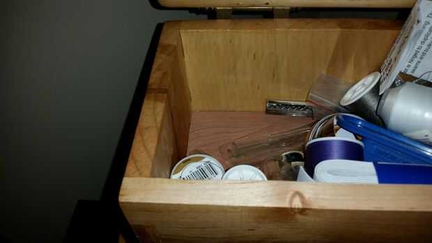 decidí que quería construir una nueva caja de costura de mi novia para su cumpleaños y al instante supo que quería hacer uno en voladizo que, al igual que cajas de trastos y cajas de costura tradicional. Buscar en internet para ayuda matemática, desc