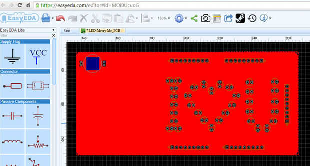 He colocado el LED poniendo en el patrón de ortografía que "me Love(heart) usted". Cool ¿no? Ahora vamos a hacer esta cosa aun más agregando una imagen de su elección a este PCB. Para ello, haga click la 'imagen' botón en el menú herramientas de PCB EasyEDA y seleccione una imagen en la nueva ventana de 'Insertar imagen en PCB'.