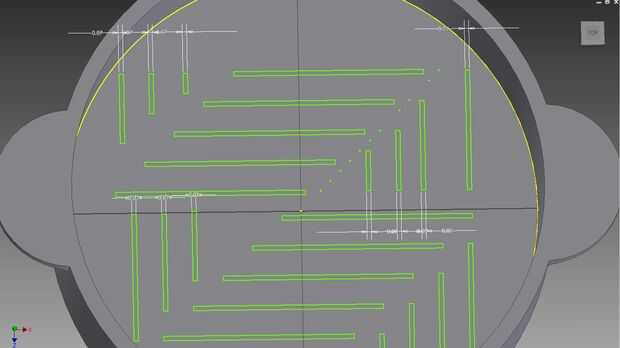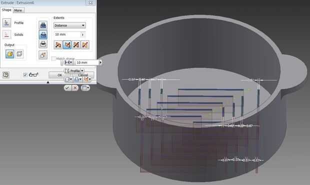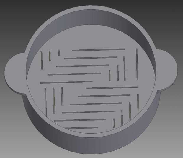 Oh boy, paso final! ¿De dónde sale el líquido de la lata ya está siendo exprimido? Vamos a hacer unas ranuras estrechas para permitir que se escape. Crear un boceto en la parte inferior del dispositivo (foto 4). Mi ranuras fueron 0,07 cm de ancho. Hice un patrón de lujo, pero realmente cualquier diseño al azar hará el trabajo. Terminar el dibujo.