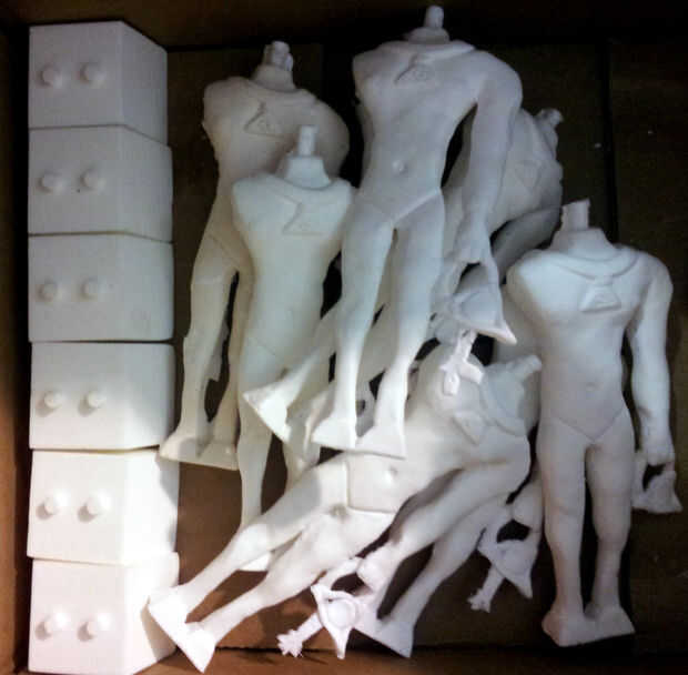 Para las inyecciones, me uded poliuretano smoothcast 300, que es un material del cuadro de diálogo de komponanti... Después de mezclar lo materiales incopora, la reacción entre ellos, que toma unos pocos minutos, hace un plástico duro y estable. Usé un simple syrine para empujar el material dentro de los moldes. La bodys tienen de los moldes con piezas pieza extra que serán cortadas apagado en el paso siguiente.