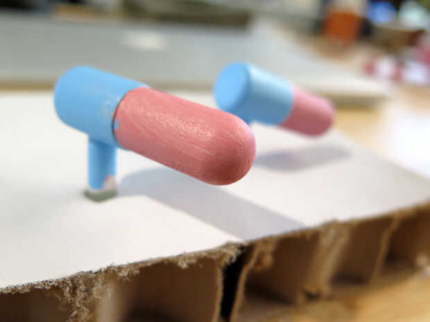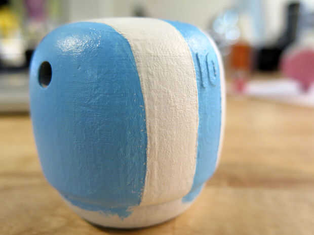 Utilizar algunos pinceles de diferentes tamaños y pintar el juguete. Para hacerlo rápido tendrás que dejar los colores más oscuros ultima por lo que no importa si cruzar la línea. El pelo y los pantalones cortos eran de color negro, como se puede ver en las 2 imagenes que color les rosa y azul antes de pintar negro.