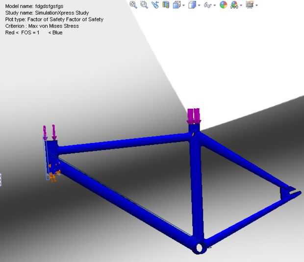 Corrí una simulación sobre esta parte y lo hizo muy bien. He añadido 450 libras después de ampliar el tamaño de la moto y pasa fácilmente. He utilizado acero de aleación como mi material de elección.