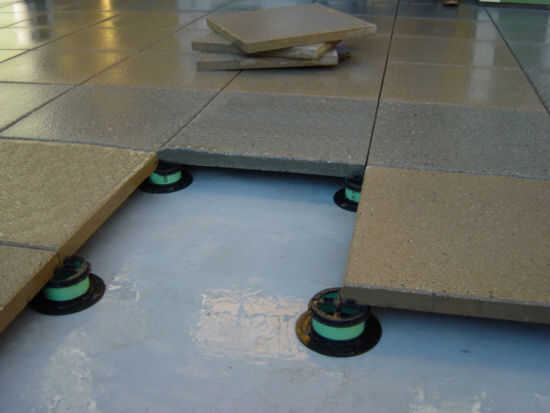Todos los elementos de la cubierta, madera y piedra, fueron instalados mediante un sistema de pedestal que ayuda a mantener el nivel superficial de la cubierta entera, permitiendo que el agua fluya debajo de ellos y hacer su camino hacia el drenaje.