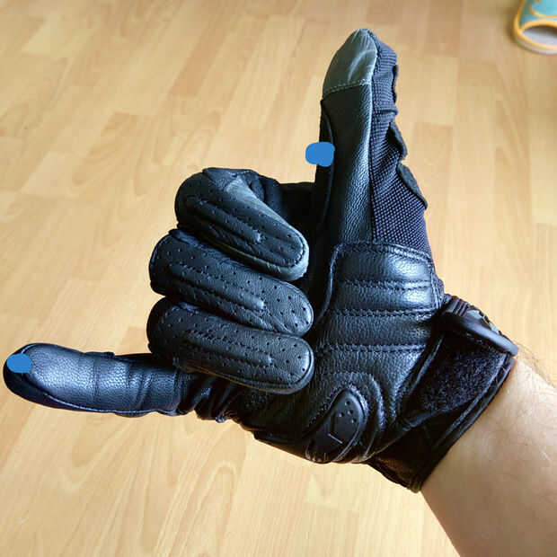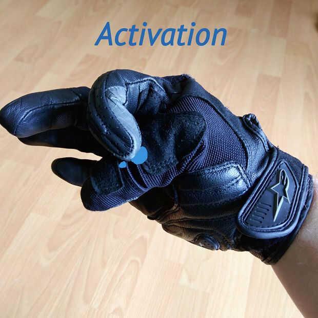 Con el altavoz y el micrófono en la cinta de pulgar y meñique, usted tiene la posición ideal para hacer una llamada telefónica. Desde el guante detecta su posición de la mano, abriendo la mano a este gesto de "Call Me" automáticamente responde o inicia una llamada de teléfono. Para evitar cuelgues accidentales, debe hacer clic en el botón de nudillo para colgar.