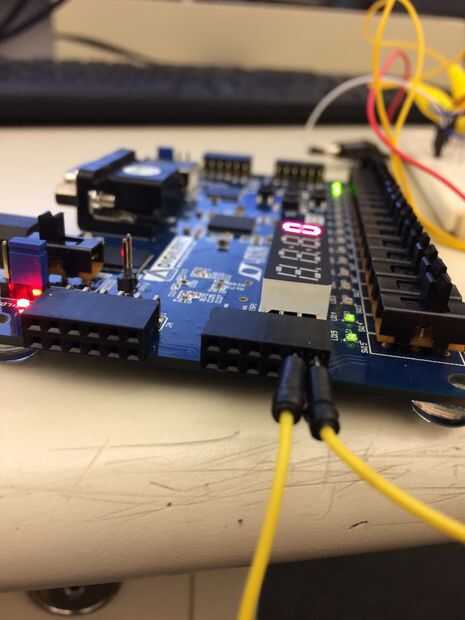 Este paso es bastante fácil. Ver Analógico/Digital Pins en su Manual de referencia de FPGA ver su Manual de referencia de FPGA para pernos de Analógico/Digital. En la placa Basys, se llama un doble Pmod Analógico/Digital. Alambre de la presión de los cables del sensor analógico al pin Dual Analógico/Digital. Con eso, el proyecto está listo para los ensayos. Subir el archivo de programa a la Junta.