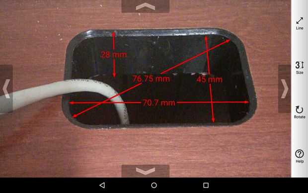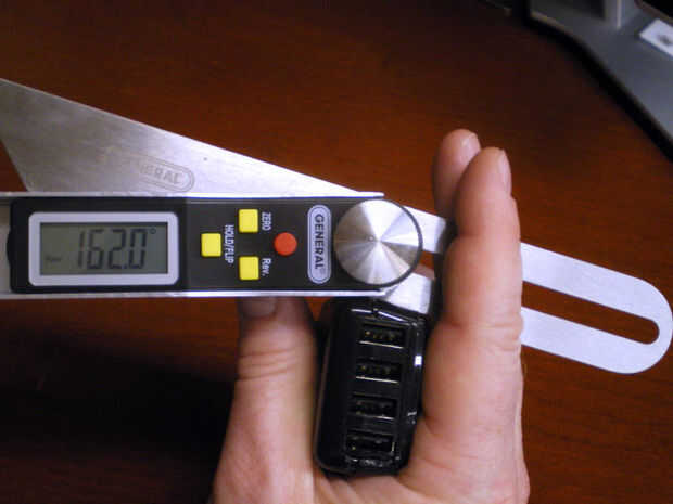 Usé una aplicación de medición y grabación para almacenar los resultados, pero un pedazo de papel trabajaría demasiado. Prefiero la aplicación, sin embargo, porque mis cuadros son más rápidos y mejor que mis bocetos. La otra imagen muestra los Goniómetros digitales en acción, uno de los muchos ángulos impares del cargador de USB donde quería pasar el diseño final de medición.