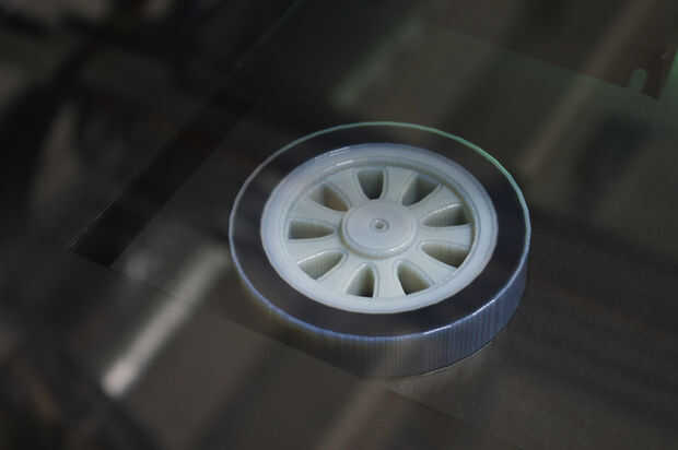 El cubo fue asignado a DM_8250_Grey40, que es un material plástico más grande. El neumático se hizo DM_9885_Shore85, que es en gran parte de caucho.