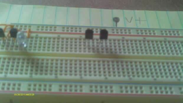 1, tienes que colocar los 2 transistores como se muestra en la foto y en el dibujo.